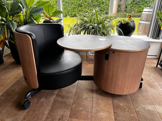 - **Compact en Functioneel**: Ideaal voor kleinere ruimtes, met een geïntegreerd bureau en opbergruimte. Er is eenvoudig stroomvoorziening onzichtbaar via de onderzijde aan te brengen met een stekkerdoos. En het zitcomfort is heerlijk!