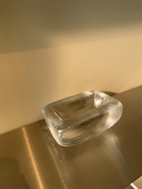 Prachtige zeer zeldzame schaal van Vicke Lindstrand voor Orrefors. De schaal heeft een ijsachtige uitstraling. Hij is erg zwaar (2,5kg).