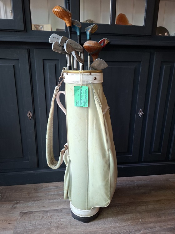 Ontdek de charme van het verleden met deze vintage Slazenger golftas uit de jaren 60/70. Deze set, compleet met klassieke houten en metalen clubs, straalt een authentieke retro uitstraling uit die elke golfcollectie zal verrijken.