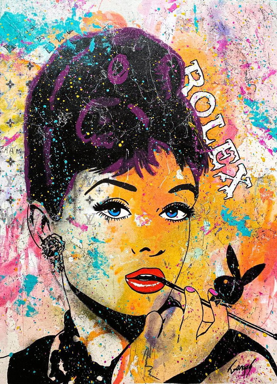 Dit is een schilderij met acryl- en spuitverf op canvas, gesigneerd door de kunstenaar GONGAS, met afmetingen van 100 x 75 cm. Inclusief certificaat van echtheid, uniek formaat, nieuw canvas (opgerold) en een spieraam. Een investering in kunst is op aanvraag mogelijk. GONGAS, ook bekend als Gonçalo REIS, is een jonge, opkomende Portugese straatkunstenaar, wiens werk te zien was op ARTSPER en ARTMAJEUR. Als zoon van de overleden en iconische NOMEN is hij al sinds zijn kindertijd ondergedompeld in de wereld van graffiti en heeft hij daardoor contacten met de besten in het genre. Desondanks heeft hij zijn eigen stijl ontwikkeld en verkoopt hij zijn schilderijen en lithografieën wereldwijd. Verzending vanuit Frankrijk via Colissimo met handtekeningbevestiging, in een veilige koker. Factuur wordt meegeleverd.