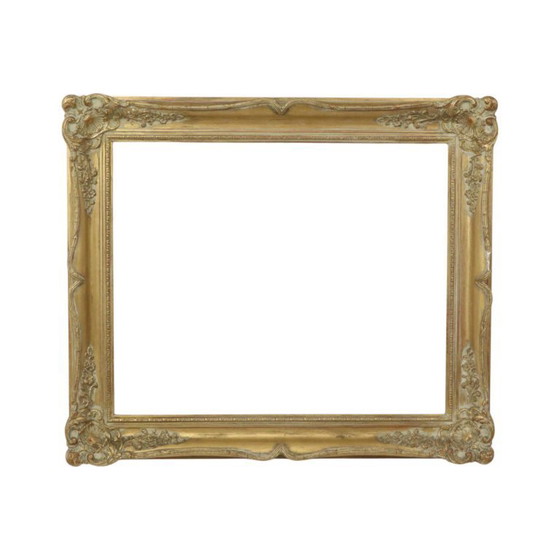 Klassieke vergulde vintage grenenhouten lijst met karaktervolle ouderdomspatine, volledig in barok stijl, versierd met elegante acanthusbladeren, patronen en bloemen, circa eerste helft van de 20ste eeuw.