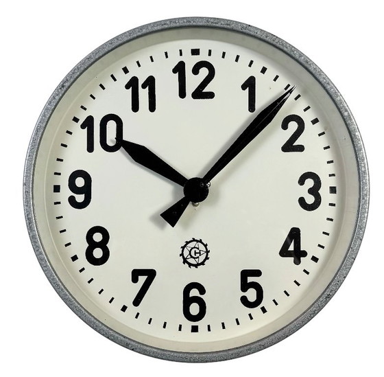 Grijze industriële fabriekswandklok van Chronotechna, jaren 50