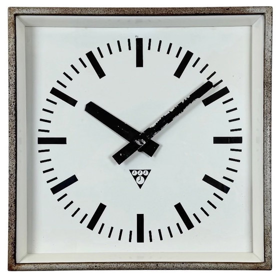 Grijze roestige industriële vierkante wandklok van Pragotron, jaren 70
