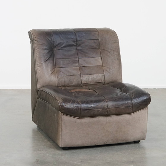 Aangeboden deze grijze vintage lederen design fauteuil uit de jaren ’70.