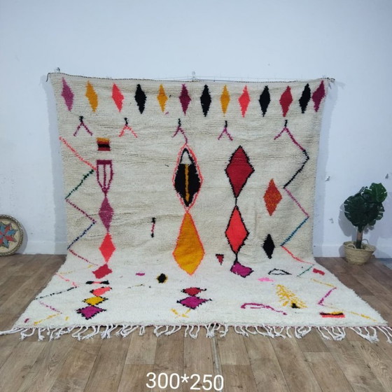 Groot handgemaakt Marokkaans Azilal-tapijt – 300 × 250 cm – Kleurrijk Berber wollen tapijt