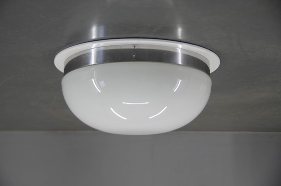 Zeldzame grote Bauhaus inbouwlamp, Type 5888, gemaakt in Tsjecho-Slowakije door Zukov in de jaren 1940, gelabeld