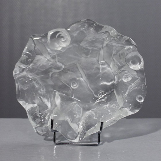 Vintage matglazen sieradenschaal met fossielendecoratie, ontworpen door Jolanda Prinsen voor Walther Glas, Duitsland, circa 1970.