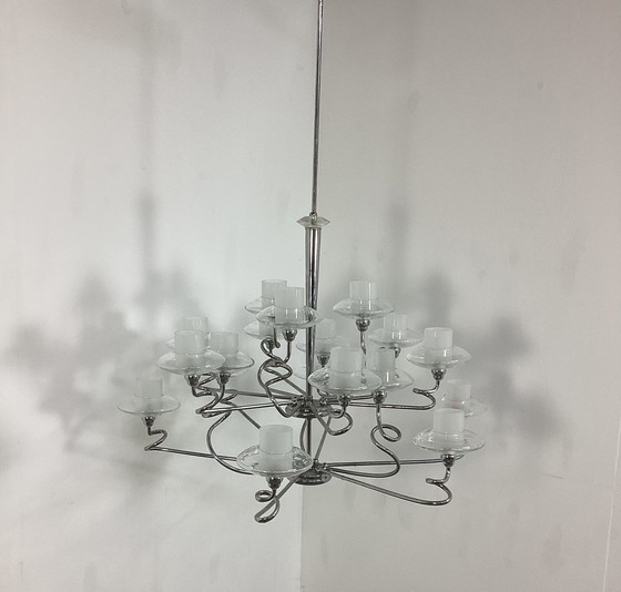 Grote Italiaanse Design Kroonluchter Chroom En Glas