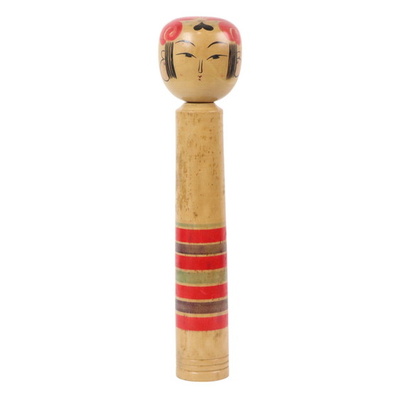 Prachtige grote met de hand gemaakte en geschilderde kokeshi pop uit de late Showa periode (1926-1989), XL formaat van 48cm! Circa jaren 70-80, Japan, onderaan gesigneerd door de maker. Specifieke gebieden hebben andere soorten kokeshi, ze kunnen ruwweg onderverdeeld worden in 11 verschillende types, telkens met een kenmerkende vorm of stijl. Deze poppen zijn erg populair bij verzamelaars, ook zouden ze geluk brengen wat ze extra populair maakt! Zeer leuke objecten om een kinderkamer of woonkamer mee te decoreren. Wat zijn kokeshi poppen eigenlijk? Kokeshi zijn afkomstig van Japan en het zijn eenvoudige houten poppen zonder armen of benen die al meer dan 150 jaar worden gemaakt als speelgoed voor kinderen. Ze zijn met de hand gedraaid van hout en hebben een eenvoudig lichaam en hoofd met een paar dunne, geschilderde lijnen om het gezicht te definiëren. Het lichaam heeft vaak bloemen en ringontwerpen. Deze mooie kokeshi verkeert in zeer goede vintage conditie conform met de leeftijd, check de foto’s voor meer details! Afmetingen 48cm hoog, het hoofd 11cm diameter, het lijf 7cm diameter. Gewicht: 1,264kg.