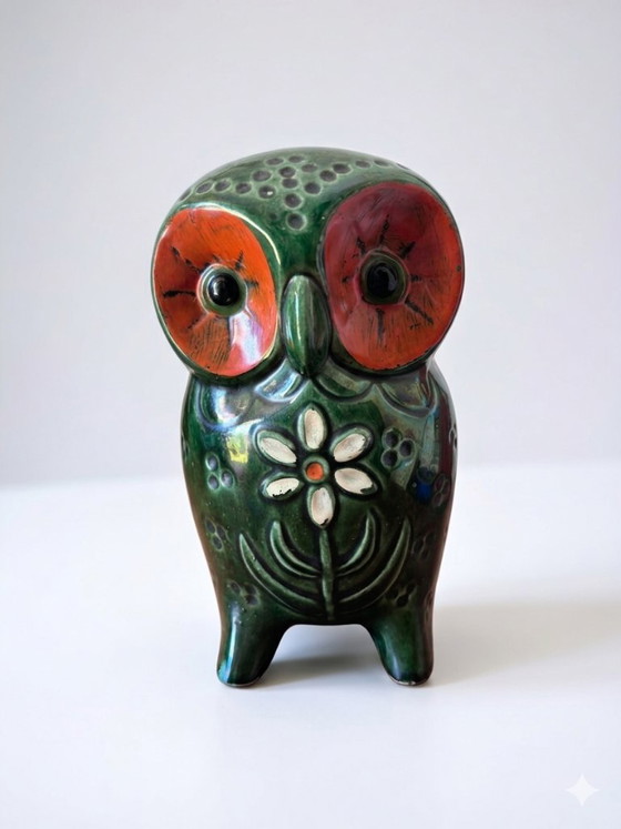 Grote vintage spaarpot met uil van Jema Holland, 20 cm, glanzend keramiek, jaren 70.
