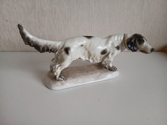 Gyorgy Vastagh Herend, groot porseleinen beeld Ierse Setter