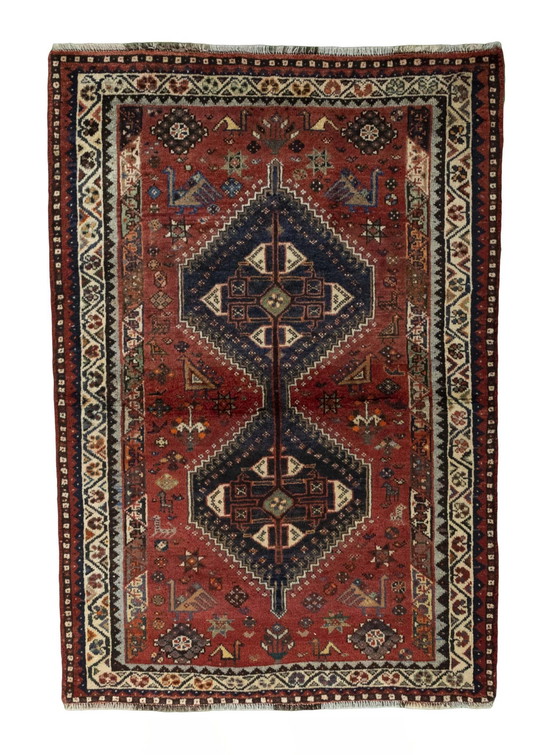Dit handgeknoopte nomadentapijt uit Shiraz combineert traditioneel vakmanschap met een uniek ontwerp dat de ziel van het nomadentapijtweven weerspiegelt. Details: Afmetingen: 175 x 118 cm - veelzijdig en ideaal voor kleine tot middelgrote kamers. Materiaal: Hoogwaardige scheerwol, bekend om zijn duurzaamheid en warmte. Ontwerp: Klassiek geometrisch patroon met een centraal medaillon en omringende traditionele symbolen. De kleuren rood, blauw en beige geven het tapijt een warme en uitnodigende uitstraling. Handgemaakt: Zorgvuldig vervaardigd door ervaren nomadische wevers, waardoor elk stuk uniek is. Conditie: In zeer goede staat. Professioneel gewassen en opgeknapt. Verzending: Veilige levering met UPS inclusief tracking. Wij zijn een groothandel in handgemaakte tapijten. Al onze tapijten worden zorgvuldig geïnspecteerd, professioneel gewassen en opgeknapt. NR: 53160