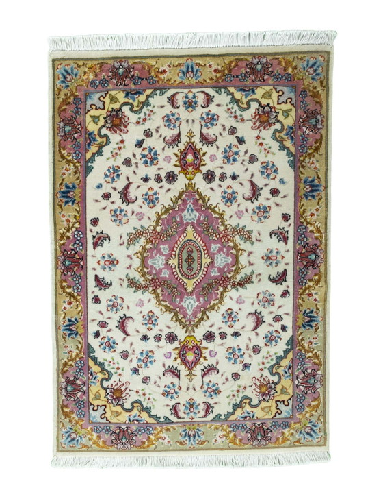Handgeknoopte Tabriz 50 Raj Met Zijde - 87 X 60 cm