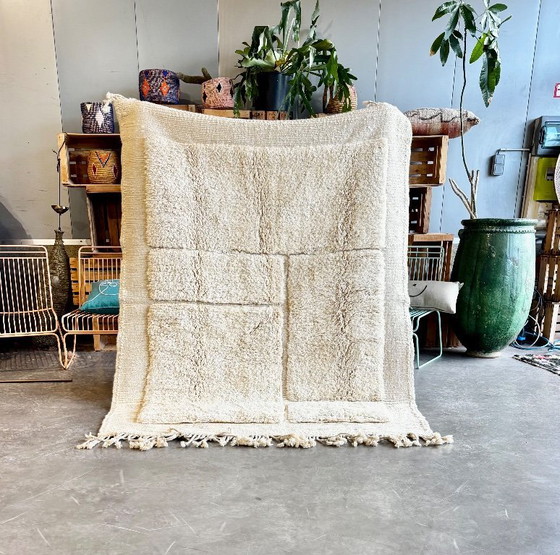 Dit authentieke Marokkaanse Mrirt-tapijt is een handgemaakt exemplaar, volledig vervaardigd uit 100% natuurlijke wol en geweven door bekwame ambachtslieden in het Midden-Atlasgebergte van Marokko. Mrirt-tapijten staan bekend om hun uitzonderlijke dichtheid en luxueuze zachtheid en behoren tot de hoogste kwaliteit Berber-tapijten.