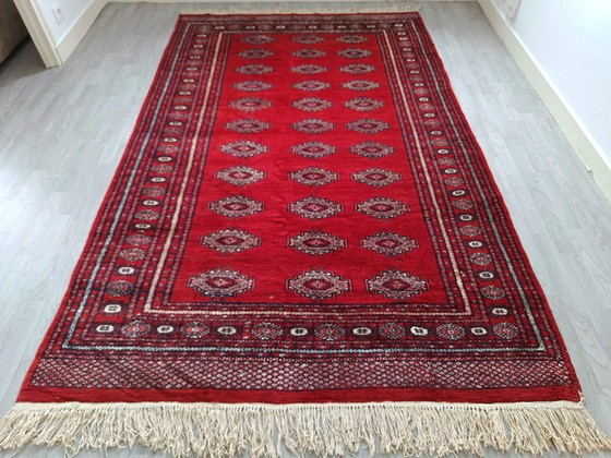 Handgemaakt Pakistaans Bukhara-tapijt in goede algemene staat. (14)