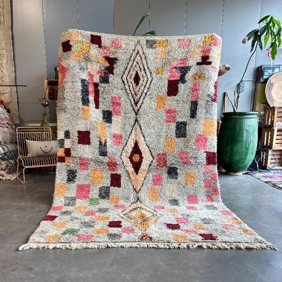 Handgemaakte Marokkaanse Boujad Wol Vloerkleed 190x300 cm - Kleurrijk Abstract Ontwerp