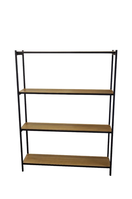 Ontdek de elegantie en functionaliteit van deze handgemaakte plank met meerdere niveaus, gemaakt van massief beukenhout en ondersteund door een stevig metalen frame. Met zijn vier ruime planken biedt hij volop ruimte om boeken, decoratieve objecten of waardevolle verzamelingen te presenteren en elke ruimte een vleugje verfijning te geven.