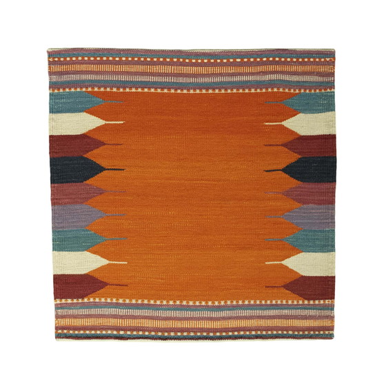 Een moderne design kelim met een opvallend geometrisch patroon in warme, levendige kleuren. Perfect voor kleine kamers of als decoratief hoogtepunt. Afmetingen: 90 x 87 cm Materiaal: Hoogwaardige wol Ontwerp: Eigentijds geometrisch patroon Conditie: Nieuw en ongebruikt Onderhoud: Professioneel gewassen en klaar voor gebruik Verzending: We verzenden deze kelim met UPS en een trackingnummer voor een veilige en betrouwbare levering. NR: 54696