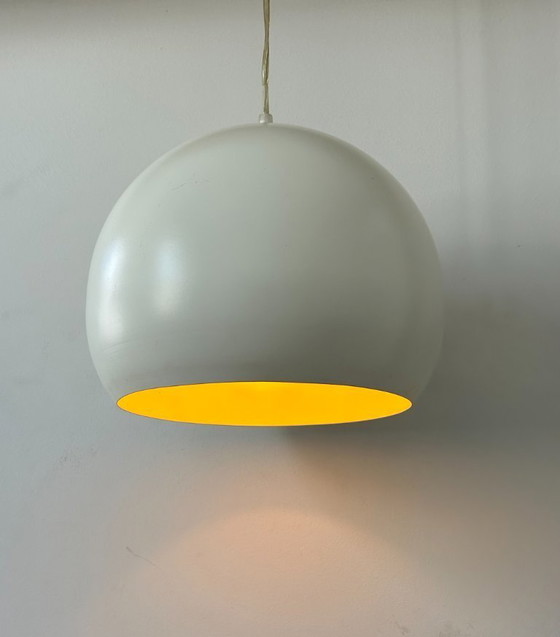 Hanglamp van wit metaal, geproduceerd in Frankrijk in de jaren 1980.