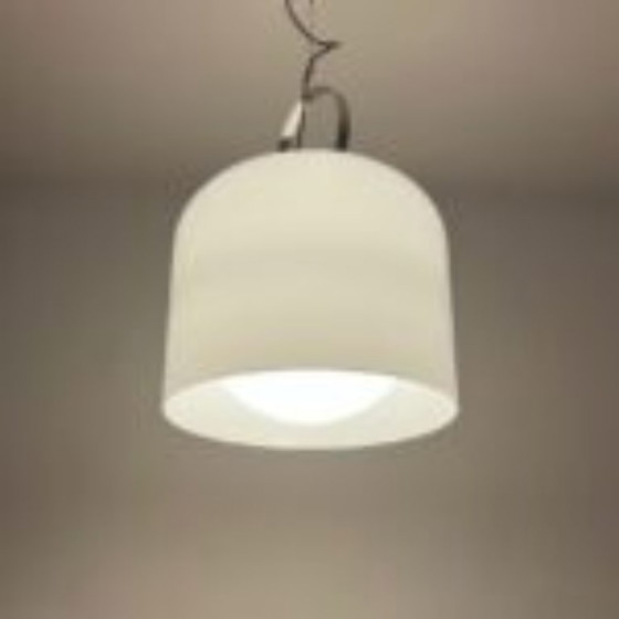 De Alvise is een opvallend ontwerp uit 1970 van Luigi Massoni voor Harvey Guzzini. De Alvise is een van de eerste grote hanglampen die in de beginperiode van de toepassing van kunststoffen op de markt is gebracht. De ook na bijna 60 jaar nog spierwitte kap heeft voor de afscherming van de lichtbron een additionele diffuser en is voorzien van enkele metalen accessoires in chroom. De lamp heeft een E27-fitting waarvoor ledlampen in diverse sterkten verkrijgbaar zijn. De lamp is 60 cm hoog, heeft een diameter van 45 cm en verkeert in uitstekende staat.