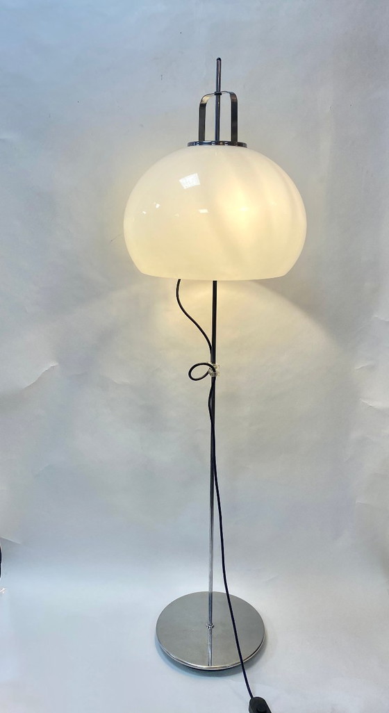 Iconische vloerlamp uit het ruimtetijdperk van Harvey Guzzini, gemaakt in Italië in de jaren 70.