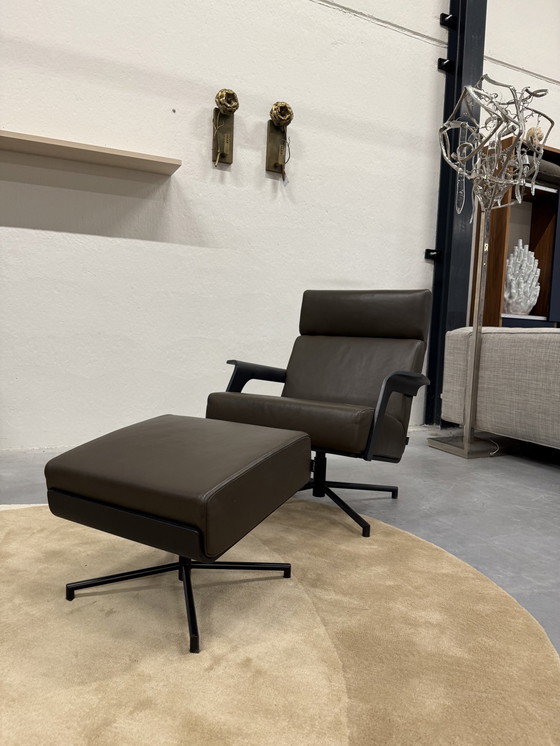 Harvink de Kaap draai Fauteuil uitgevoerd in leder Luxe Sattel Elephant met bijpassende voetenbank, met zwart eiken frame. Nieuwprijs €3240 AFM 82xD86xH90 ZH44-46 ZD53 Poef 50xD48xH42cm Ontwerp: Martin Haksteen Nu scherp te koop voor €1750!