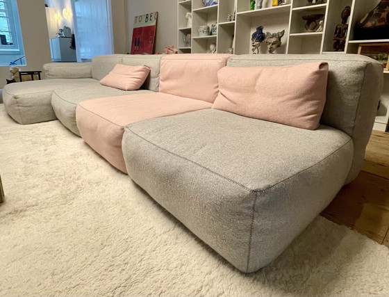 Maak kennis met de Hay Mags Soft Low 4-zitsbank, een meesterwerk van modern design dat comfort en stijl naadloos combineert. Deze bank is zacht en de uitnodigende kussens zijn bekleed met een verfijnde combinatie van grijs en roze textiel van Kvadrat (Divina melange 120 en Divina 613), wat zorgt voor een chique maar comfortabele zitervaring.