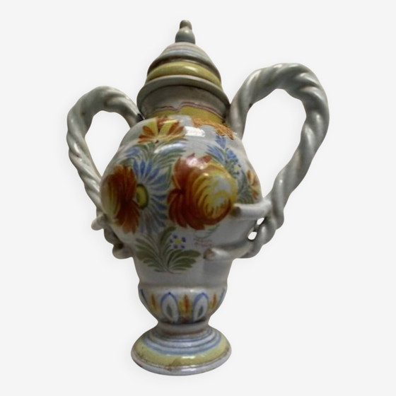Grote geglazuurde keramieken vaas uit de jaren 40 en 50. Faïencerie Henriot Quimper, etiket opgeplakt heruitgave van een decoratie uit ons museum volledig handgemaakt...