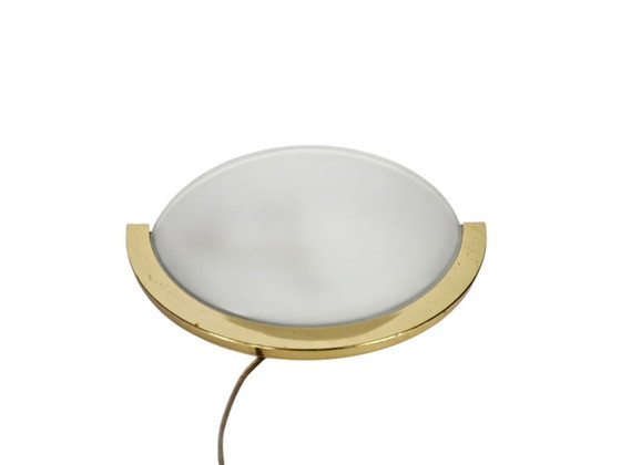 Mooie messing kleurige wandlamp met gesatineerd glas van het merk Herda Holland - er zit ongeveer 200cm snoer bij met een schakelaar en 2 polige stekker - lamp is getest en werkt naar behoren - gloeilamp wordt niet meegeleverd.