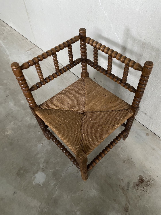 Maak kennis met deze charmante vintage hoekstoel die rustieke elegantie en tijdloze charme uitstraalt. Dit meubelstuk is vervaardigd uit rijk bruin hout en heeft een prachtig geweven rotan zitting, die zowel comfort als stijl biedt. Het unieke hoekontwerp maakt het een veelzijdige aanwinst voor elke kamer, perfect voor het creëren van een gezellig leeshoekje of het toevoegen van een vleugje karakter aan uw woonkamer.