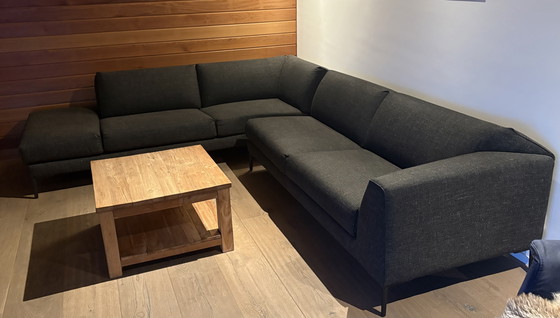 - Het strakke design van de bank wordt geaccentueerd door de gelakte poten van sparrenhout, die een stevige maar stijlvolle basis vormen.