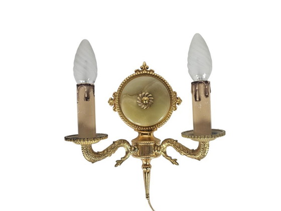 Mooie exclusieve Hollywood Regency stijl wandlamp - verguld en een medallion van marmer