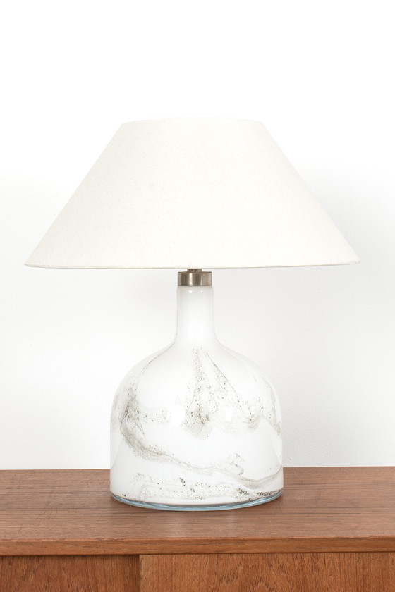 Holmegaard tafellamp. Deze glazen tafellamp is ontworpen door Michael Bang voor Holmegaard.De lamp is in een goede vintage staat.