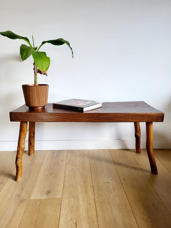 Houten bank, landelijke stijl, brutalist , massief hout, Frankrijk