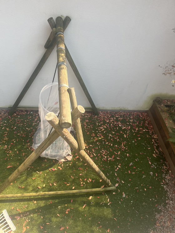 Houten schommel installatie. Inclusief drie schommels. Ook geschikt voor hangstoel of hangbank