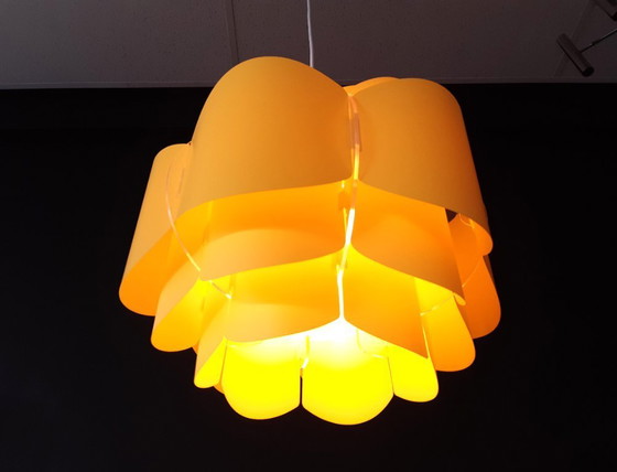 Hoyrup Jasmine bouwpakket, Vintage kunststof gevouwen lamellen hanglamp door Lars Eiler Schiøler, Deens design, mcm pvc lamellen