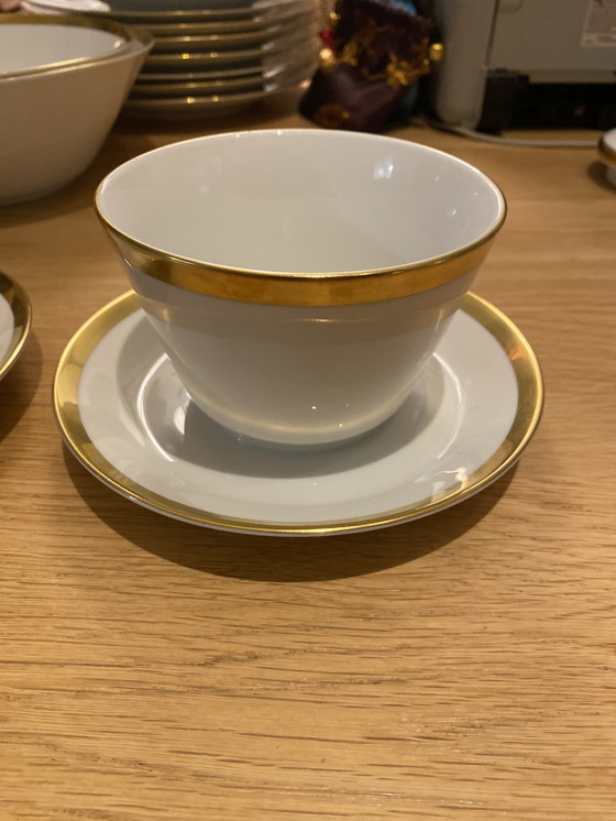 - **Elegant ontwerp**: De gouden rand accentueert het klassieke witte porselein en belichaamt de verfijnde stijl van het midden van de vorige eeuw.