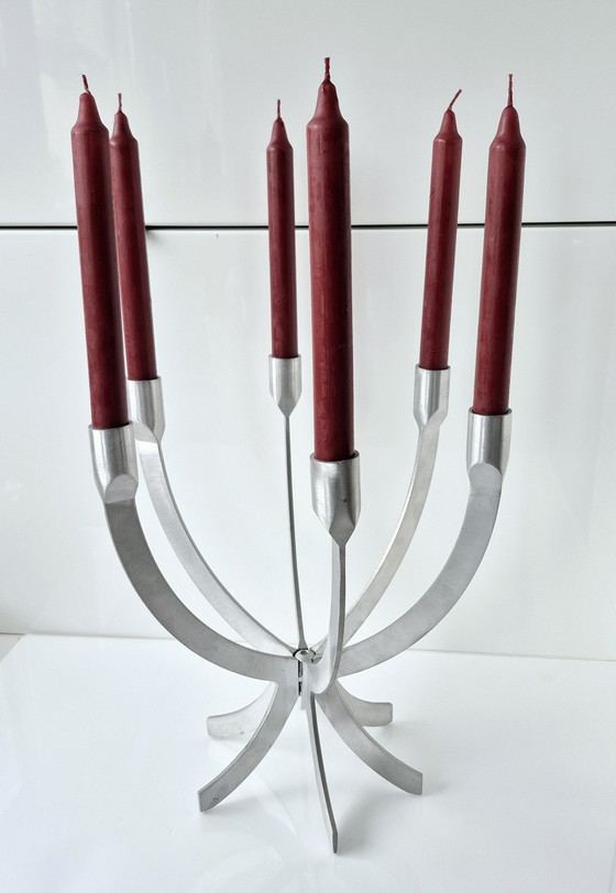 Zesvlammende kaarsenhouder van Ikea: Ceremonis van Sigga Heimis. Zeer goede staat met minimale ouderdomssporen, aluminium, ca. 30,3 cm hoog x 28,4 cm breed x 28,4 cm hoog. Wordt verkocht zonder kaarsen en fruitschaal. Dit zijn slechts voorbeelden van hoe de houder gebruikt kan worden voor decoratie of andere doeleinden. De kaarsenhouder wordt gedemonteerd geleverd, wat u bespaart op verzendkosten. U hoeft hem alleen nog maar in elkaar te zetten met de meegeleverde schroef – eenvoudig!