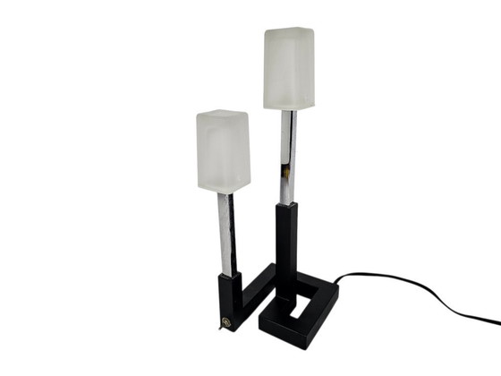 Deze elegante tafellamp van Ikea, model Korsby, is een prachtig voorbeeld van design uit de jaren '90. Met zijn strakke lijnen en moderne uitstraling voegt deze lamp een vleugje tijdloze stijl toe aan elke ruimte. De lamp is voorzien van een stevige metalen basis en een glazen kap die zorgt voor een zachte, diffuse verlichting. Perfect voor op een bureau of bijzettafel, deze lamp combineert functionaliteit met esthetiek. Neem contact met ons op voor meer informatie of om deze unieke lamp aan uw interieur toe te voegen.
