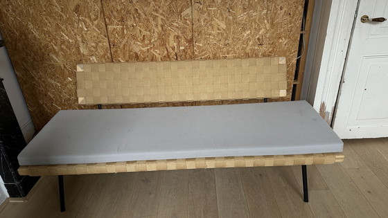 Het matrasje is niet origineel maar katen maken door een bootkussen atelier, de hoes is wasbaar en evt makkelijk te vervangen.