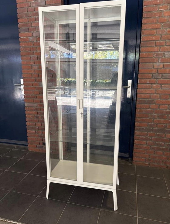 Geef uw interieur een upgrade met deze stijlvolle Ikea vitrinekast, gemaakt van duurzaam wit metaal en glas. Het minimalistische ontwerp past naadloos in elk modern interieur en biedt een verfijnde manier om uw dierbare spullen tentoon te stellen.