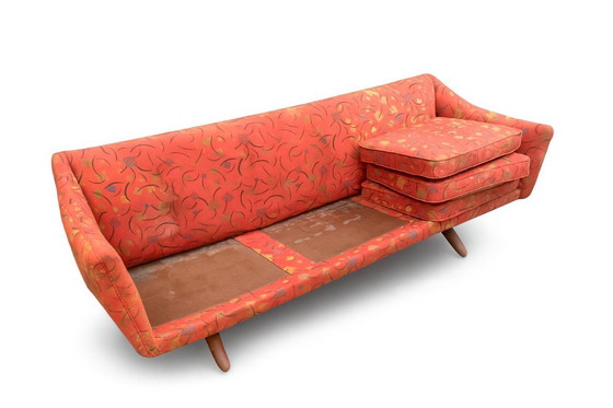 Dit is bij uitstek een bank voor een liefhebber, verzamelaar of stylist die een authentiek Deens ontwerp zoekt met ruimte om het volledig naar eigen smaak te laten herstofferen. Vergelijkbare modellen na restauratie brengen aanzienlijk meer op.