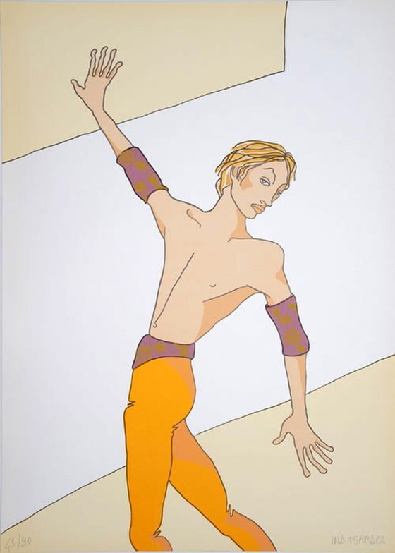 'Insonnia II', lithografie van de Italiaanse kunstenares Ina Ferrara (Milaan). Op hard papier, in potlood genummerd (68/90) en gesigneerd, afmetingen: 70 x 50 cm.