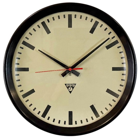 Industriële bruine bakelieten fabriekswandklok van Pragotron, jaren 60