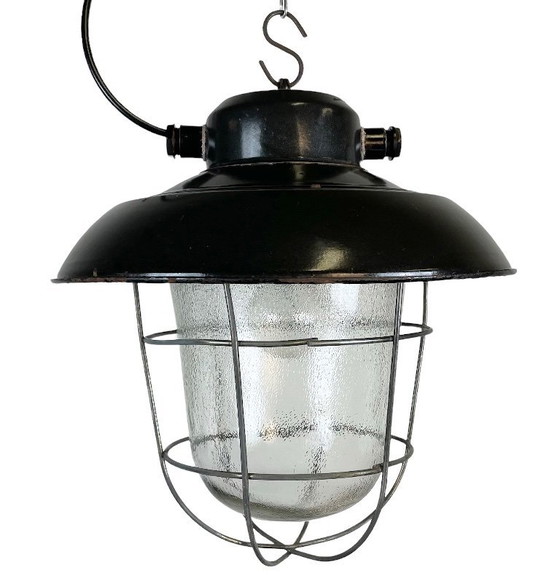 Industriële zwarte geëmailleerde fabriekshanglamp, jaren 60