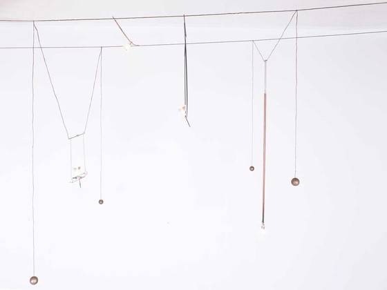 Het systeem bestaat uit een transformator en 2 kabels, op deze kabels kun je verschillende elementen plaatsen, door ze er simpelweg overheen te hangen.