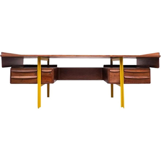 Italiaans houten bureau in walnoot uit de Mid Century, jaren 1960