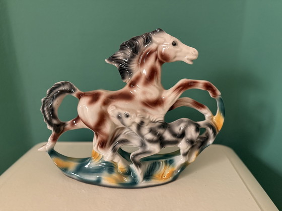 Voeg een vleugje Italiaanse charme toe aan uw huis met dit prachtige porseleinen beeldje van een paard en veulen. Perfect voor dierenliefhebbers en verzamelaars, dit beeldje legt de gratie en schoonheid van deze majestueuze dieren vast in een speelse en dynamische pose.