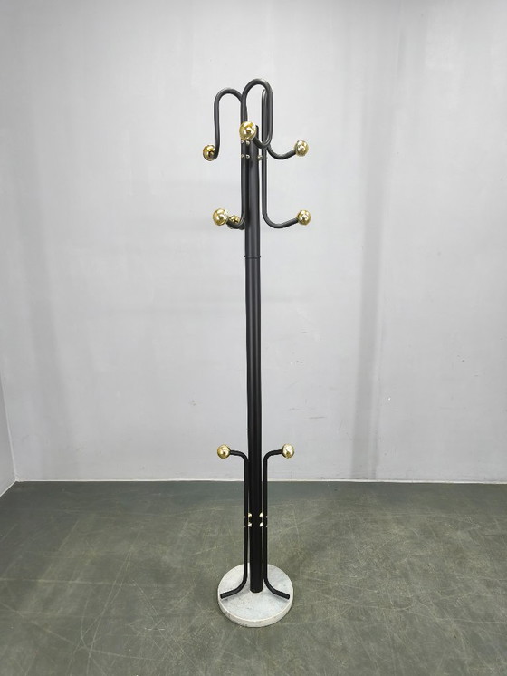 Italiaanse kapstok uit het midden van de 20e eeuw, zwart metaal, plastic en steen, jaren 70