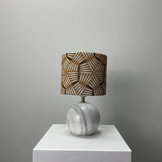 Breng een vleugje Italiaanse verfijning in je huis met deze prachtige witmarmeren tafellamp uit de jaren 1960. Met een prachtig afgeronde voet gemaakt van zwaar wit marmer, delicaat dooraderd met zacht grijs, is deze lamp een waar kunstwerk. De stevige constructie en luxe materialen weerspiegelen de elegantie en het vakmanschap van het Italiaanse design uit de Mid Century. Om de vintage charme aan te vullen, is de lamp gecombineerd met een nieuw vervaardigde lampenkap met een perfect patroon dat harmonieert met de natuurlijke adering van de marmeren voet. De combinatie van ouderwetse materialen en eigentijdse styling maakt dit stuk een naadloze aanvulling op elk modern, minimalistisch of klassiek interieur. Deze lamp is ideaal voor een woonkamer, slaapkamer of studeerkamer en biedt zowel functionaliteit als flair. Hij werpt een warme, uitnodigende gloed en is tegelijkertijd een opvallend decoratief element. Het iconische ontwerp en de duurzame materialen zorgen ervoor dat de lamp jarenlang een geliefd stuk zal blijven. AFMETINGEN Hoogte: 31cm Diameter: 18cm Snoerlengte: 120cm